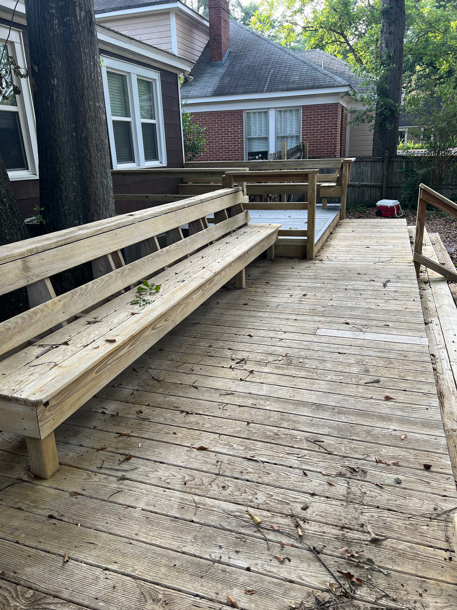 This charming Rosewood Bungalow has everything you need. Large fenced in back yard, pet friendly upon approval, large wrap around deck with built in seating great for get togethers and a backyard BBQ. There are hardwood floors throughout the house, the ceilings are 10 feet tall, crown molding throughout, the kitchen has been updated to include granite countertops and new appliances, the laundry room is equipped with a newer washer and dryer, large eating area and the den has lots of natural light and plenty of room for large furniture. Bathroom has large storage closet and a walk in shower. Three other closets provide even more storage area. There is a quaint covered front porch which has lots of room. Windows and AC have been upgraded to help keep electricity costs down.